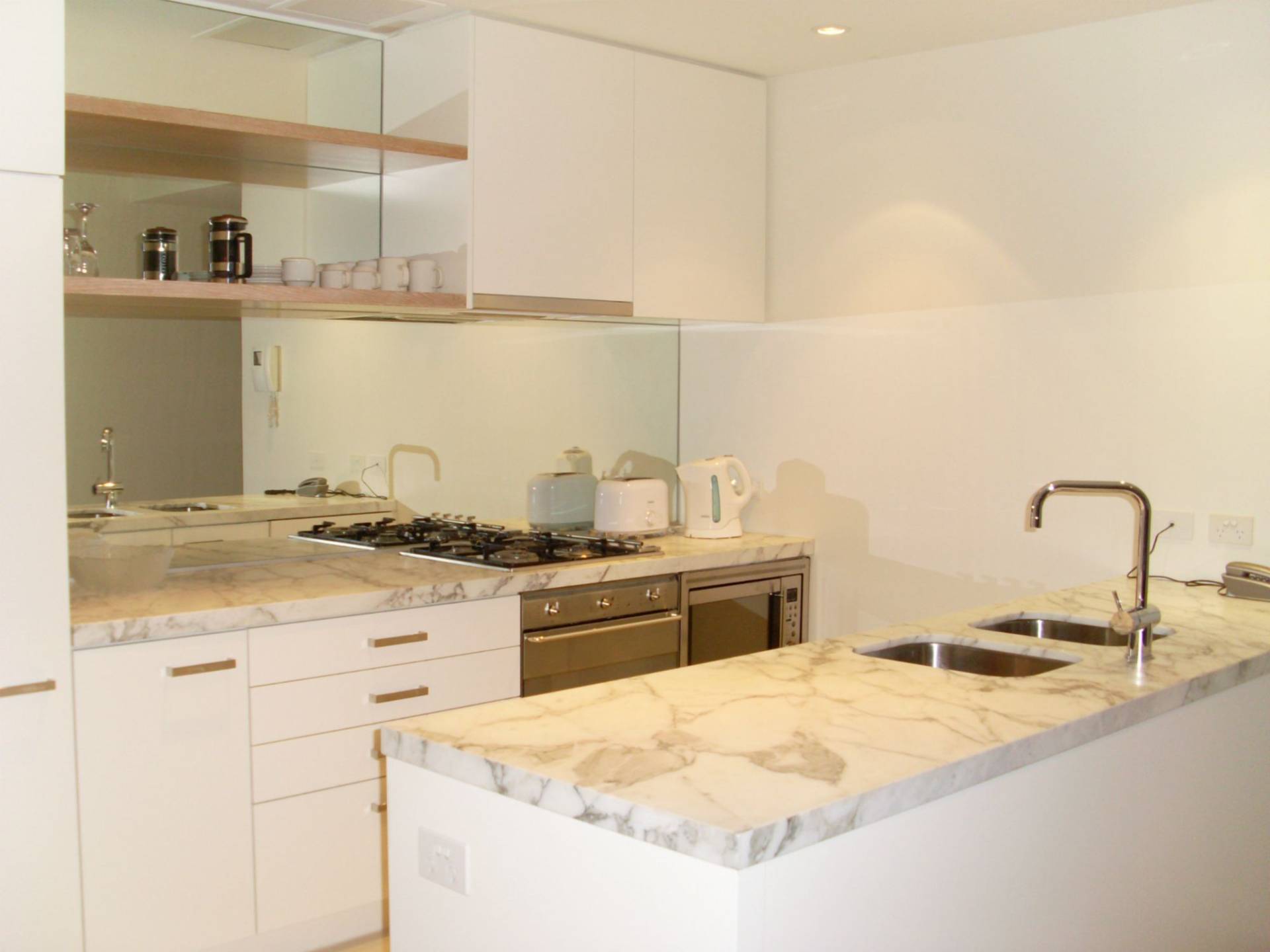 Internal is very well laid 1 bedroom with built in robe, bathroom with direct access from the living room, open plan living and dining with high ceiling and ducted aircon, modern kitchen with European cooking appliances and marble stone benchtop. External is a good size balcony for private enjoyment.
